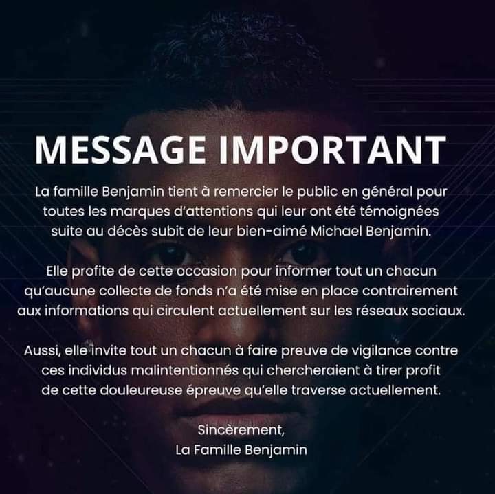 MESSAGE IMPORTANT DE LA PART DE LA FAMILLE BENJAMIM